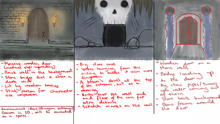 First, I made 3 initial sketches of the environment. Then, I’ve made a quick 3D Model as a reference for my digital drawing. I’ve decided to make it in the style of pixel art to make it slightly unique. My initial trial and error process was realising that a top-down perspective is challenging to imitate with pixels. Lastly, I added more details/shadows to give some depth to the art.